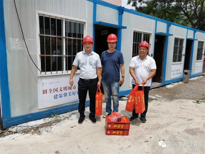 总经理龚时辉、副总经理林海富等公司主要领导陆续来到制管厂、沥青厂、项目部、沥青外场工地,代表公司向奋战在各岗位的一线员工表示了亲切的慰问和感谢,并送上了人丹、藿香正气水、风油精、饮料、毛巾等防暑降温慰问品,让一线员工深深感受到了来自市政建开大家庭的人文关怀。