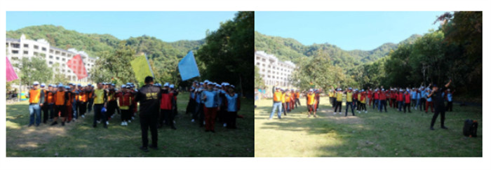 热身运动之后最有意义的当属团队风采展示,整个团队分成了战狼队、太阳队、龙虎队和蓝狼队四个分队。在各队自己选拔的队长带领下,每个队在十分钟内设计出具有自己特色的口号、logo、团队造型和队歌,然后进行团队风采展示。展示过程精彩激烈而又振奋人心,大家都拼尽全力诠释着:团结就是力量,团队就是力量。