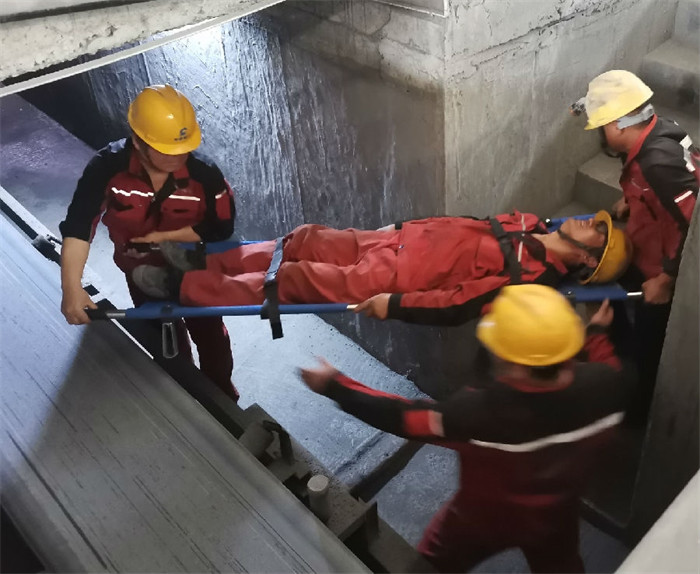 按照演练方案拟设有员工在受限空间内中暑倒地,一起的员工发现中暑人员后立即报告车间负责人,负责人得到消息当即启用应急救援方案,众人一起用担架把中暑人员抬到空旷的空间进行通风降温、服用降暑药物,并拨打120急救电话求援,使中暑员工得到及时有效的救助。