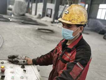 制管车间内,忙碌的身影,娴熟的操作,坚定的眼神,伴随着机械的轰鸣声,完成了一节节水泥涵管的制作。