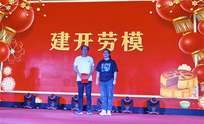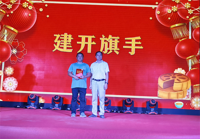 接着,对四个生产部门颁奖表彰,今年是有天气记录以来,气温最高、持续时间最长的夏季,四个生产部门员工始终坚守岗位、战斗高温,并创造了更好的成绩。会上授予工程部团队“建开旗手”,沥青摊铺团队“建开铁军”,沥青内场“建开标兵”,制管厂“建开劳模”的荣誉,并由公司领导分别为他们颁发荣誉证书和奖金。